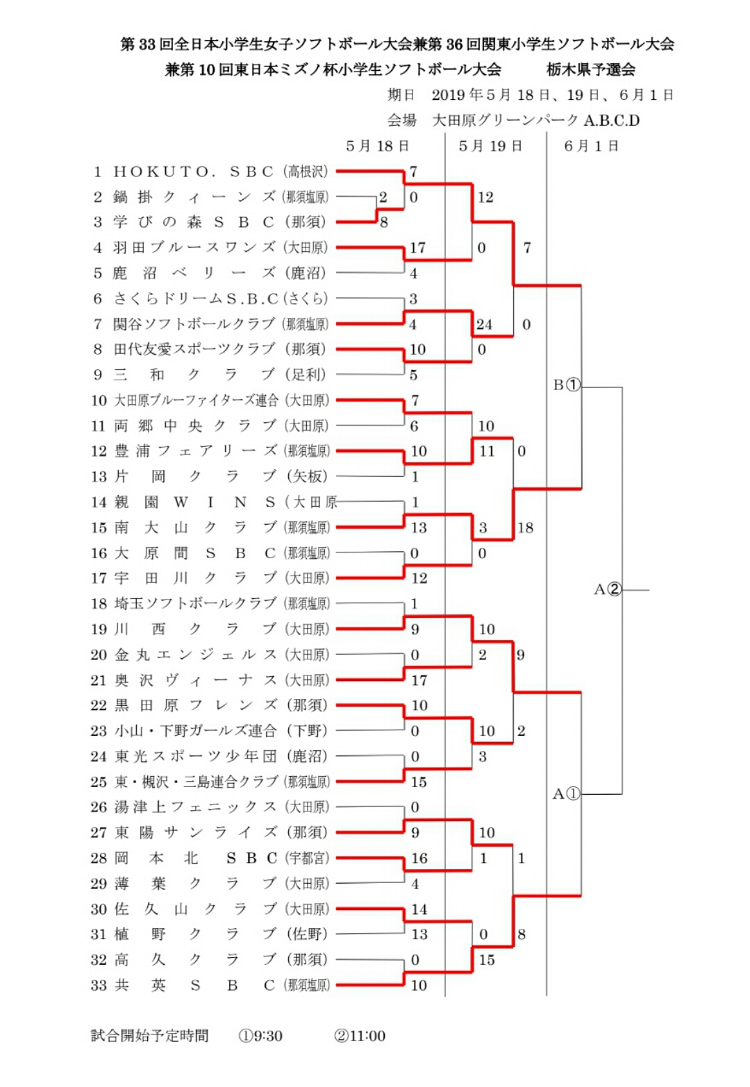 運B①:薄葉クラブ(大田原)4:1豊浦フェアリーズ(那須塩原)